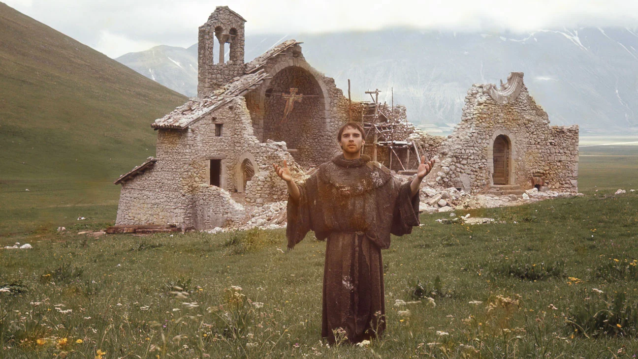 St. Francis (Graham Faulkner) outside the ruins of San Damiano church in Franco Zeferelli's film, 'Brother Sun, Sister Moon' (1972)